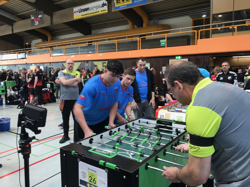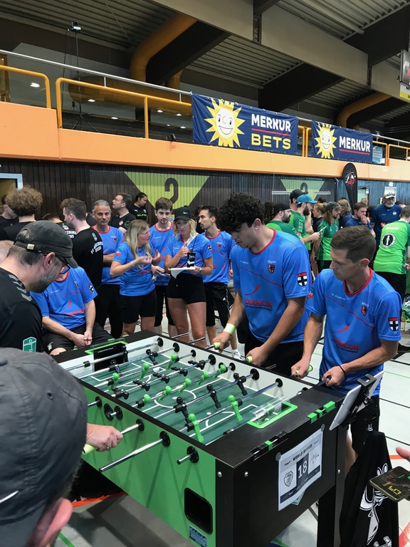 2024 gingen wir als erste Tischfußball-Mannschaft vom Bodensee in der 3. Bundesliga an den Start. Im Kader konnten max. 10 Spielende eingesetzt werden. Wir sammelten tolle Erfahrungen, zeigten Teamgeist und bekamen von unseren Mitgereisten wahnsinnige Unterstützung! Spielerisch waren wir nicht stark genug und mussten uns schliesslich im KO Spiel gegen Flensburg geschlagen geben.